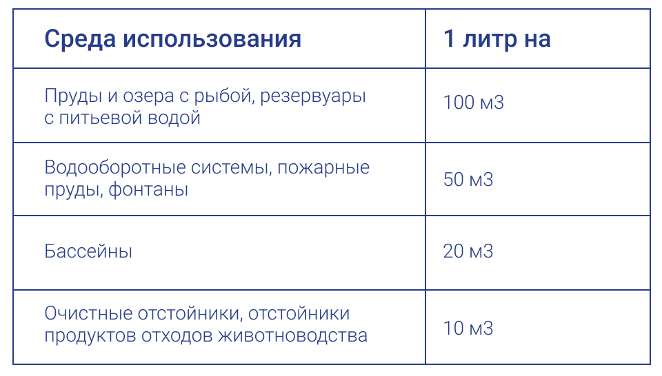 Медь не будет выпадать в осадок, а будет оставаться полностью в растворенном состоянии неограниченное количество времени. Это обеспечивает возможность избавиться от водорослей на длительный период времени без опасности передозировки данного средства.